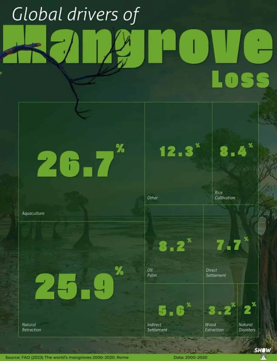 Мангровые леса тают как мороженое на солнце! Главный виновник — фермы для креветок и рыбы, им достается почти треть. Также берега убегают (из-за подъема воды и эрозии), а тропики отдают земли под рис и пальмы. Города строятся, дрова рубят, штормит... В общем, мангры в беде, нужны срочно спасательные операции! 🗞 Подробнее: pux.su 🏞 Фото от: naked-science.ru 🔔 Подписывайтесь на нас: pux_news