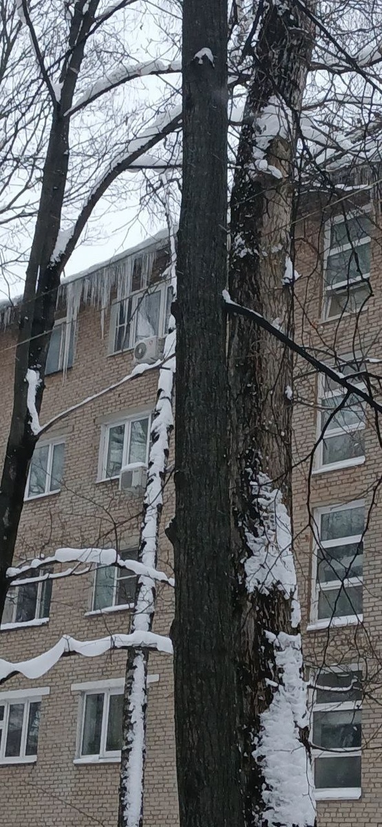 На доме № 23 по Можайскому шоссе свисают сосульки высотой в целый этаж