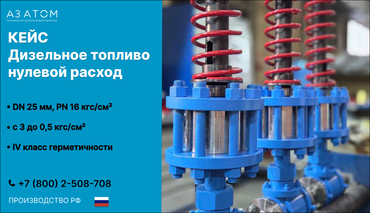 Реальный кейс работы регулятора на дизельном топливе при нулевом расходе и уличной установке. В системах с жидкой рабочей средой устойчивость работы регулятора давления критична не только при номинальном расходе, но и в режимах, когда потребитель временно отключается. Именно такая задача стояла в одном из реализованных проектов, где требовалось обеспечить стабильное давление дизельного топлива при возможной работе системы «на тупик» и уличной установке оборудования. Такие режимы характерны для систем топливоподачи, где даже кратковременный рост давления может привести к остановке оборудования. Исходная инженерная задача Регулятор давления устанавливался на промышленном объекте с постоянным режимом эксплуатации. Рабочая среда — дизельное топливо. Особенность узла заключалась в том, что при отключении потребителя расход в трубопроводе мог снижаться до нуля. При этом даже кратковременное повышение давления в выходной линии приводило бы к отключению топливных насосов и остановке системы. К