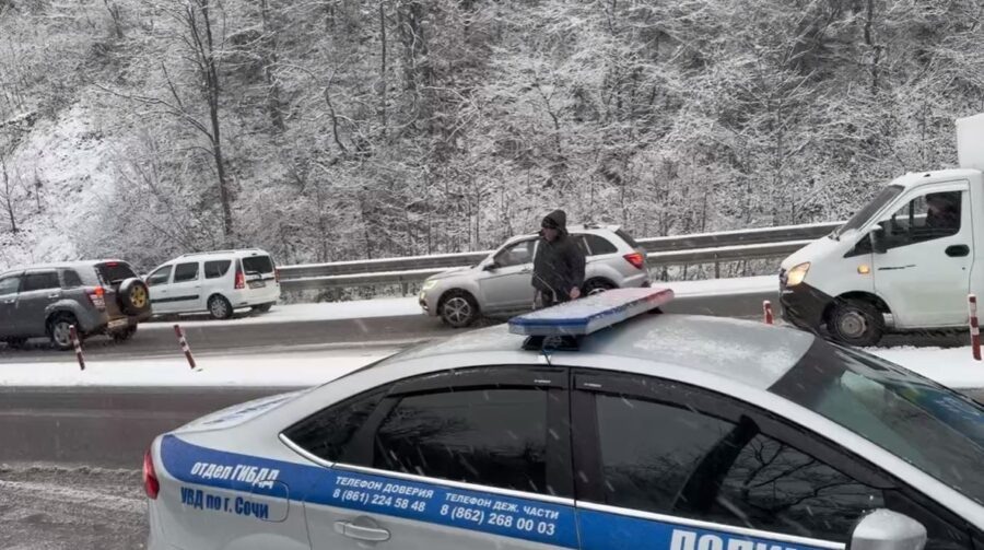 В связи с сильным снегопадом и ухудшением видимости на Мамайском перевале в Сочи сотрудники Госавтоинспекции принимают меры для регулирования движения и обеспечения безопасности водителей. На федеральной трассе в районе Мамайского перевала сотрудники Госавтоинспекции Сочи осуществляют распорядительно-регулировочные действия. Автоинспекторы распределяют потоки транспорта, оказывают помощь водителям большегрузов и обеспечивают беспрепятственный проезд спецтехники для расчистки дороги. Госавтоинспекция рекомендует водителям воздерживаться от поездок на летней резине, соблюдать дистанцию, избегать резких маневров, а также следовать указаниям регулировщиков. Экипажи ГИБДД будут работать в усиленном режиме до улучшения погодных условий. Ранее «Южане» писали, что 15 января в Сочи ожидается шторм на море, сильный ветер и гололедица.