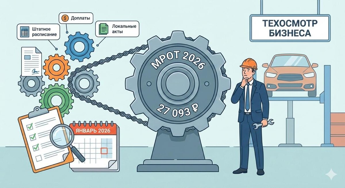 ” С 01.01.2026 федеральный МРОТ = 27 093 ₽. И это тот случай, когда «у нас все получают больше» - не всегда спасает 😅 Потому что МРОТ влияет не только на оклад, но и на целую цепочку расчётов (доплаты, гарантии, отдельные случаи оплаты времени, штрафы и т.п.). ✅ Что бизнесу стоит проверить в январе: ▪ штатное расписание и оклады (особенно неполная занятость, совместители); ▪ доплаты до МРОТ (если часть зарплаты - премии/надбавки, нужно смотреть состав выплат); ▪ локальные акты: положения об оплате труда, премировании, графики. 🎯 Мораль: МРОТ - это как техосмотр. Можно не смотреть, пока не остановили.