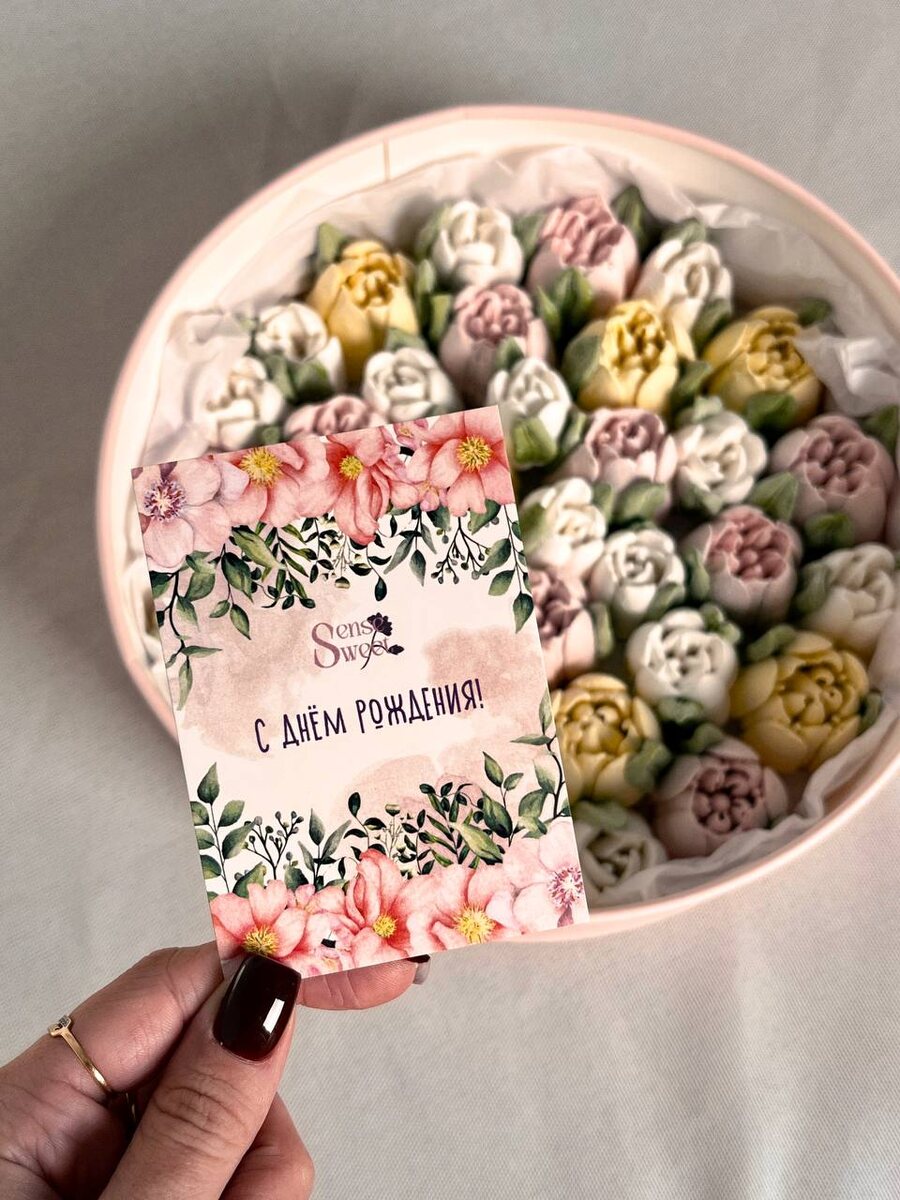 Я оставила в наборах с тремя вкусами яблочные и клубничные зефирные тюльпаны без изменений, а вот тюльпаны из тыквы с корицей сделали солнечно-желтыми, чтобы весь набор напоминал о теплых летних денечках