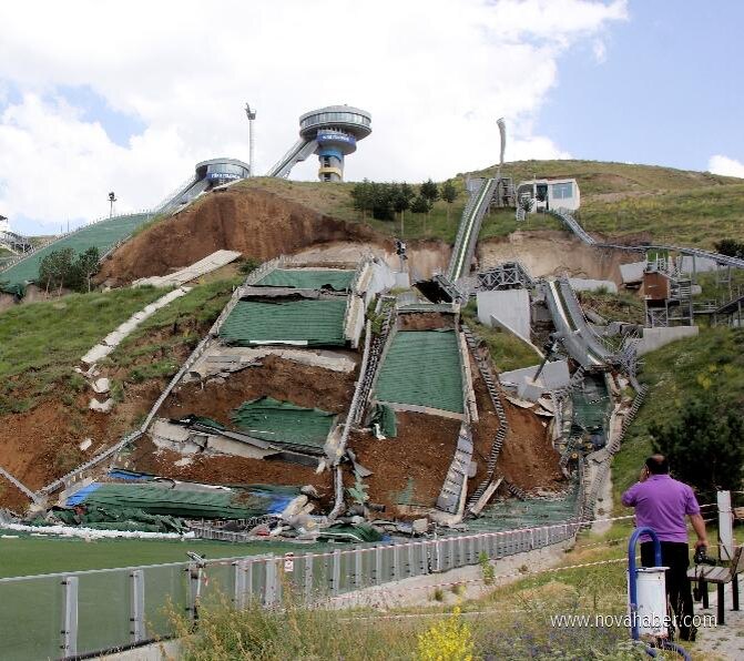? «Зачем нужен такой дорогостоящий фундамент?» «Вы понимаете, какая цена у земляных работ? Я рассчитывал обойтись без котлована!» Подобные реплики нередко звучат от наших заказчиков. Однако последствия такой «экономии» бывают весьма печальны. ▌ Отправимся в виртуальное путешествие в восточную Турцию ⛰ Город Эрзурум расположен на высоте почти двух километров над уровнем моря. Именно там, в преддверии зимней Универсиады 2011 года, появился новый горнолыжный комплекс, включавший современные трамплины. После завершения соревнований объект активно использовали спортсмены для подготовки, а власти города даже подавали заявку на проведение зимних Олимпийских игр 2026 года. На строительство комплекса было потрачено 243млн$, из них 28млн$ ушло на 5 трамплинов! Конструкция представляла собой бетонную платформу толщиной 40см, залитую на склон без фундамента, которая держалась только за счет трения‼️ Но летом 2014 года 3 трамплина из 5 просто скатились вниз по склону из-за оползня😰. По счаст