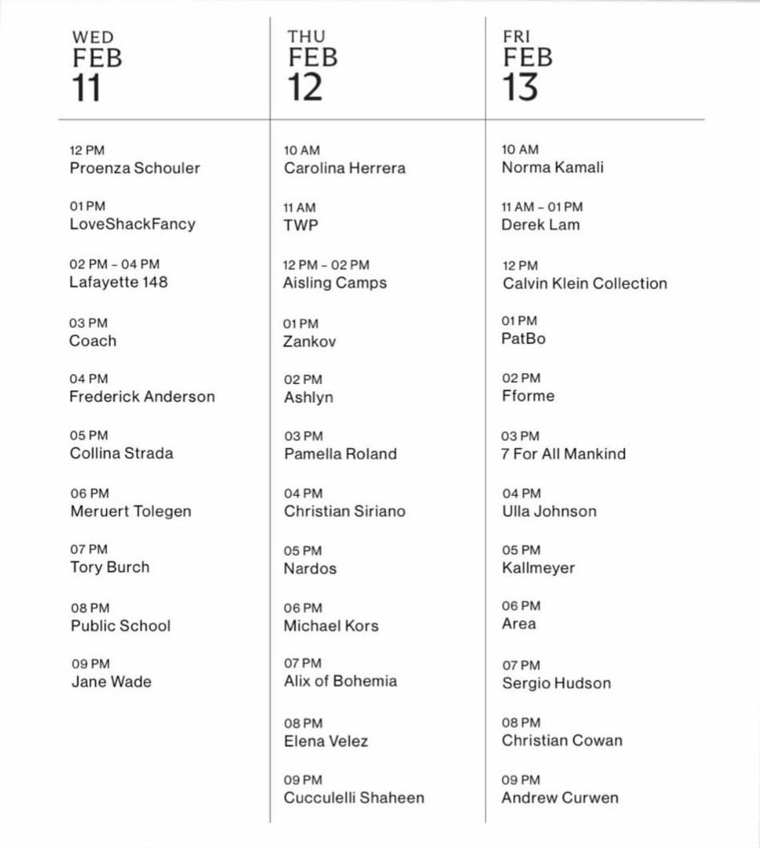 Уже совсем скоро нас ждут показы кутюрных коллекций. А 11 февраля начнется модный месяц, во время которого мы будем рассматривать осенне-зимние линии 2026/2027. Расписание открывающей его Недели моды в Нью-Йорке уже известно. Сохраняем, чтобы не потерять. Grazia