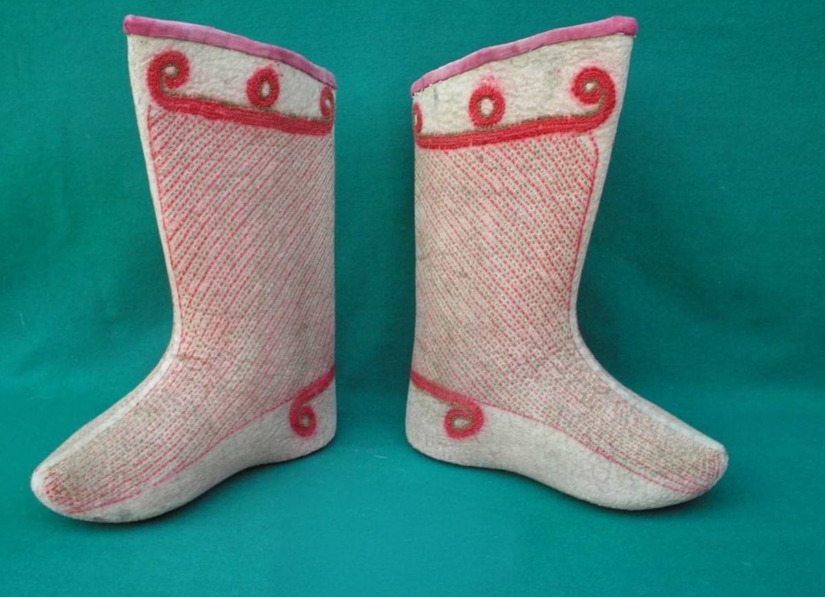Тёплые удобные валенки (они же чёсанки, катанки, пимы) до недавнего времени были основной обувью сибиряков. Поэтому неслучайно, что почти в каждом крестьянском доме Музея-заповедника «Шушенское» экскурсанты видят эту зимнюю обувь: серую и коричневую, стоптанную и с заплатами. В ней в зимнюю стужу и за сеном ездили, и дрова кололи, и за скотом ходили. А вот в доме зажиточного хозяина Павла Кононовича Черкашина можно увидеть валенки праздничные: из белой шерсти, украшенные вышивкой и обшитые красной тканью. Их одевали на службу в церковь, в гости, на святочные гуляния. Сотрудники музея называют эти валенки «суриковскими», потому что такие же можно увидеть на одном из персонажей картины Василия Сурикова «Взятие снежного городка». Эти произведения валяного искусства, изготовленные в начале ХХ века, не только «работают» в музее, но и побывали в Москве, когда там открывался музей «Русские валенки», были «гостями» выставок в Красноярске, Боготоле, Енисейске, Саяногорске, Абакане. И везде вы