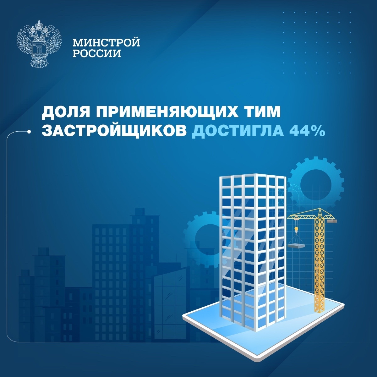 По итогам 4 квартала 2025 года доля девелоперов, применяющих технологии информационного моделирования (ТИМ), достигла 44 %, кварталом ранее