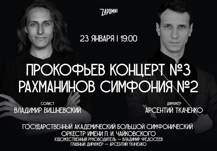 : Прокофьев и Рахманинов в Большом зале консерватории 23 января 2026 в Большом зале Московской консерватории Zapomni представит программу из сочинений Сергея Прокофьева и Сергея Рахманинова, двух величайших русских композиторов. Они были современниками, живя в первой половине ХХ века — в эпоху стремительного развития технического прогресса, в насыщенное потрясениями революций и войн время. При этом более разные, кардинально противоположные характеры трудно было бы найти. Рахманинов — наследник Петра Чайковского, представитель поколения Ивана Бунина и Александра Куприна, один из последних рыцарей романтического века. Прокофьев (младше его на 18 лет) — enfant terrible, дерзкий нарушитель правил и законов, создатель наполненной энергией нового века музыки. Программа концерта даст возможность прочувствовать это различие. Вы услышите: ● полный невероятной красоты, искрящейся радости и изобилия фантазии Третий концерт для фортепиано с оркестром Прокофьева и ● величественную и прекрасн