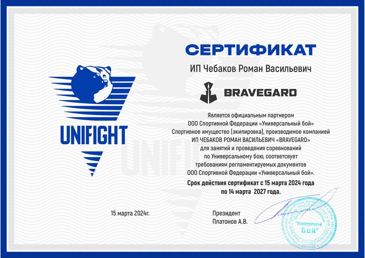 Мы производим профессиональную экипировку одобренную Федерацией Универсального боя России. В нашем арсенале: Лицензированные кимоно для Универсального боя Борцовки и спортивные футболки Ветрозащитные тренировочные костюмы Мы постоянно работаем над расширением ассортимента для полного обеспечения спортсменов.