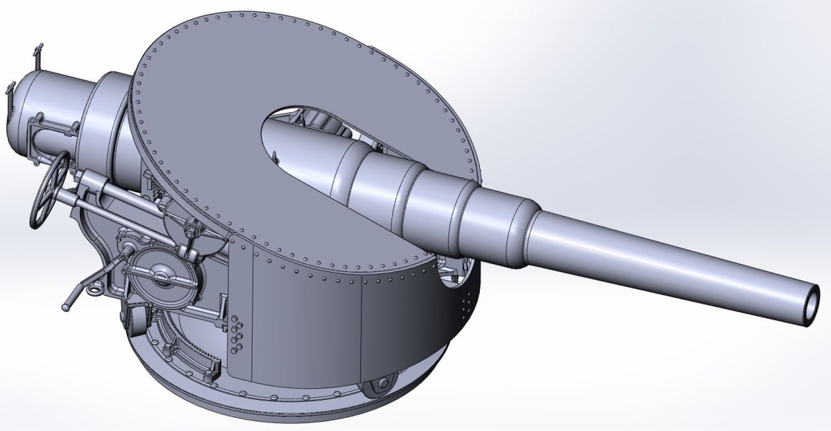 Scale_3D разработали орудие 203-мм 30 калибров на центральном штыре Вавассера в масштабе 1/72.