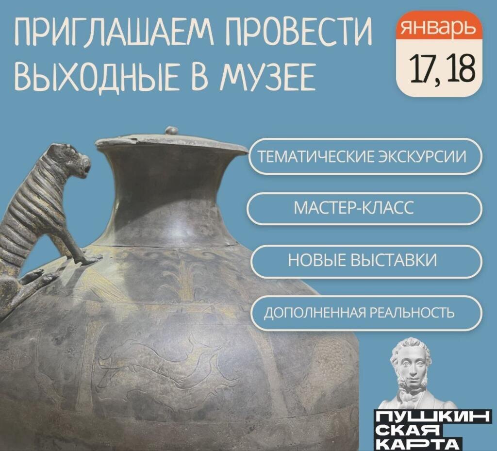 В предстоящие субботу и воскресенье, 17 и 18 января, главное здание музея по адресу ул. Московская, 38/40 приготовило для посетителей насыщенную программу. В течение двух дней гостей ждут три тематических мероприятия, рассчитанных на группы от 10 человек: * 11:00 – «В мире динозавров». Познавательно-творческая программа, в завершении которой участники смогут проявить фантазию на мастер-классе по раскраске барельефов. * 12:00 – «История города и региона». Мероприятие, которое познакомит с основными вехами прошлого через главную экспозицию музея. * 13:00 – «Сокровища донских степей». Рассказ о уникальных находках и культуре кочевых народов на основе экспозиции «Сокровища кочевников Евразии». Особенность сезона – возможность посетить экскурсии с применением технологий дополненной реальности. Они позволяют «оживить» экспонаты и по-новому взглянуть на историю. Для приобретения билетов на такие экскурсии необходимо предварительно записаться по телефону +7 (86342) 4-49-35, а затем обрат