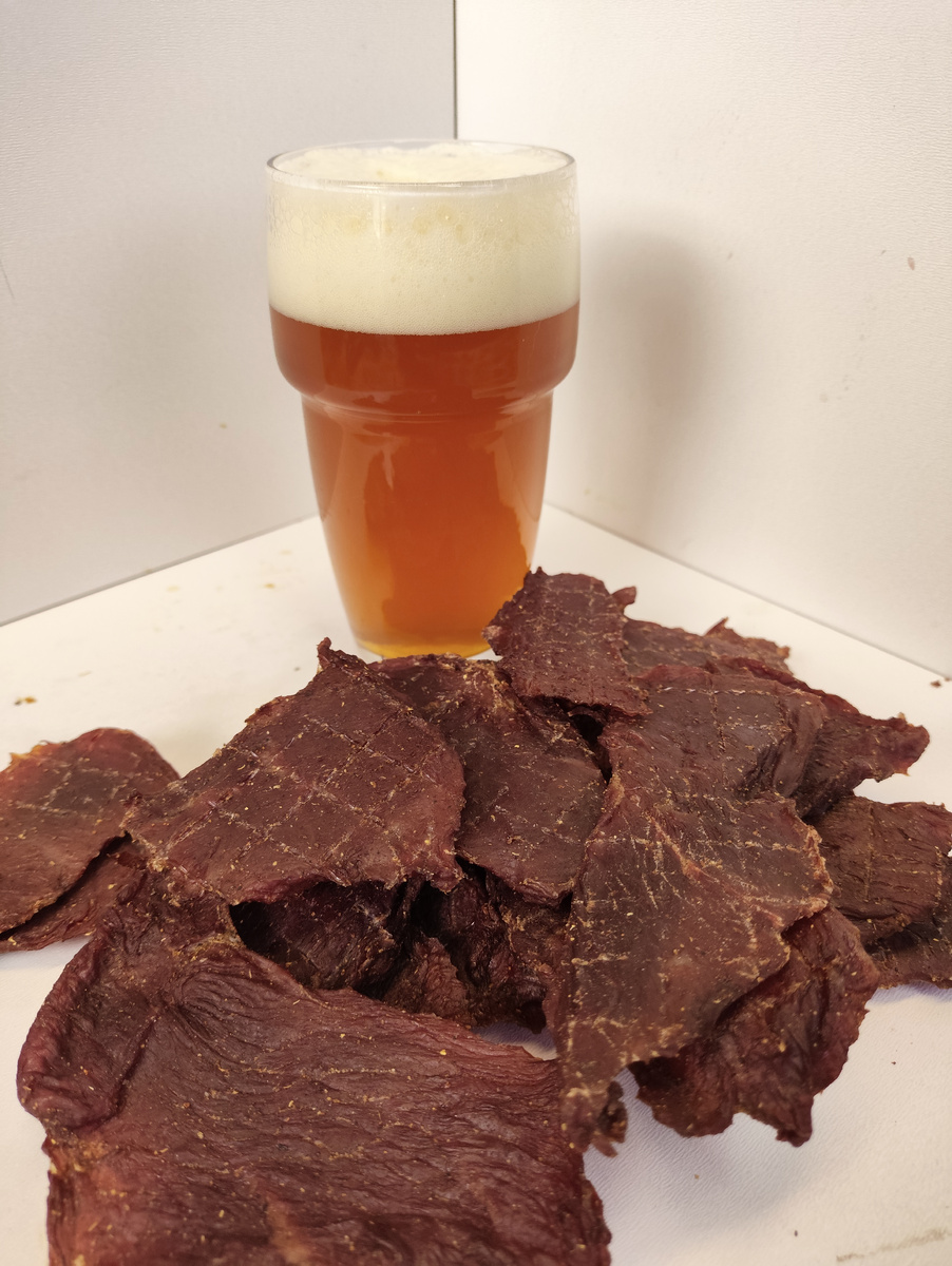 Состав: говядина - 1 кг пчм 1 грамма чеснок сухой 2 грамма кайенский перец 1 гр кориандр 2 грамма корица 0,5 гр соль нитритная 22 гр сахар тростниковый 10 гр соевый соус 50 гр вода 50 грамм Приготовление: 1 Зачистить говядину и порезать поперек волокон на пластины (слайсы) толщиной 5 мм Для изготовления джерок отлично подойдет глазной мускул или другие части окорока зачищенные от жил и пленок 2. пряности, соль , воду и соевый соус соединить в удобной миске и размшать до однородного состояния. 3. равномерно нанести получившийся маринад на нарезанные слайсы мяса 4. посол в холодильнике 12 часов 5. термообработка-сушка в дегидраторе 35 °C - 60 минут 55 °C - 90 минут 65 °C - до желаемой степени усушки (у меня 60%) 75 °C - контрольная варка (сушка) - 15 минут