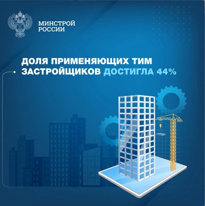 % 🇷🇺 Минстрой России сообщает, что по итогам 4 квартала 2025 года доля девелоперов, применяющих технологии информационного моделирования (ТИМ), достигла 44 %, кварталом ранее показатель был на уровне 42 %. 🖥️ Внедрение ТИМ — это стратегическое направление цифровизации и один из ведущих инструментов повышения эффективности работы строительной отрасли, который предполагает комплекс процессов создания и управления цифровой информационной моделью на протяжении всего жизненного цикла строительного объекта. 💬 По аналитике ДОМ.РФ уровень применения ТИМ в девелопменте составил 44 % в 4 кв. 2025 года, то есть технологии информационного моделирования применяет почти каждый второй застройщик. За последние три года данный показатель вырос более чем в 3 раза. 🔵 Сегодня ТИМ используется при возведении жилья в 80 регионах. Топ субъектов РФ по применению возглавляют Москва, Краснодарский край и Московская область. 📄 Благодаря «цифровым двойникам» объектов можно значительно сократить издержк