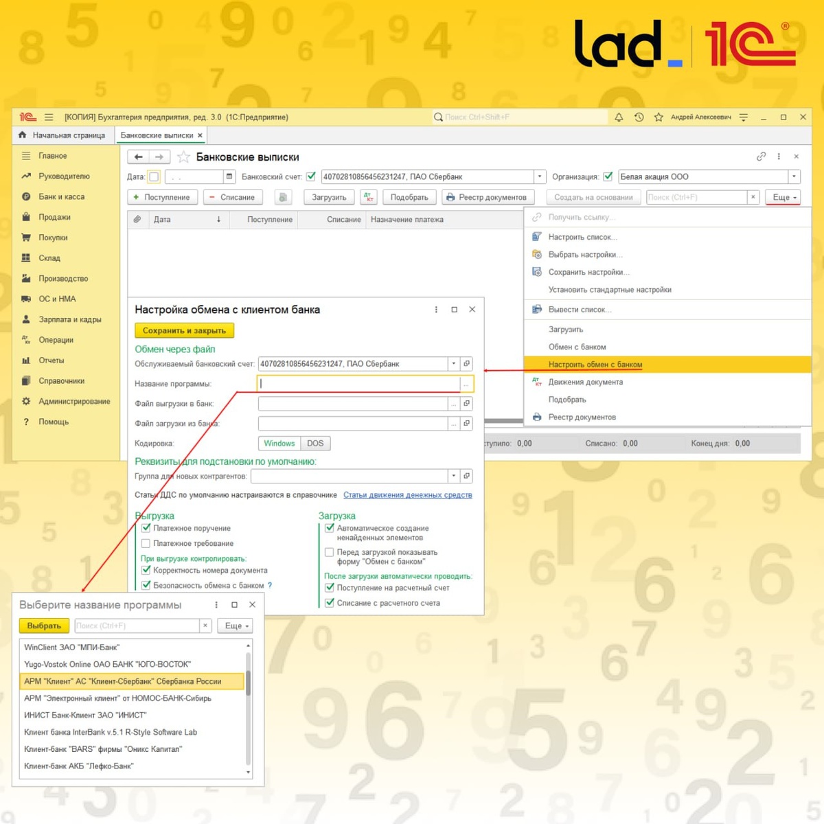 ; π‘ΠΊΠΎΡΡΠ΅ΠΊΡΠ½ΡΠΉ ΡΡΠ΅Ρ Π΄Π΅Π½Π΅Π³ Π΄Π΅Π½Ρ Π² Π΄Π΅Π½Ρ. π€©ΠΠ΄Π΅ Π½Π°ΡΡΡΠ°ΠΈΠ²Π°Π΅ΡΡΡ ΠΎΠ±ΠΌΠ΅Π½ ΠΡΡΡ Π² ΠΏΡΠΎΠ³ΡΠ°ΠΌΠΌΠ΅ ΠΏΡΠΎΡΡΠΎΠΉ, Π½ΠΎ Π²Π°ΠΆΠ½ΡΠΉ: ΠΠ°Π½ΠΊ ΠΈ ΠΊΠ°ΡΡΠ° β ΠΠ°Π½ΠΊΠΎΠ²ΡΠΊΠΈΠ΅ Π²ΡΠΏΠΈΡΠΊΠΈ β ΠΡΠ΅ β ΠΠ°ΡΡΡΠΎΠΈΡΡ ΠΎΠ±ΠΌΠ΅Π½ Ρ Π±Π°Π½ΠΊΠΎΠΌ ΠΡΠΊΡΠΎΠ΅ΡΡΡ ΠΎΠΊΠ½ΠΎ Β«ΠΠ°ΡΡΡΠΎΠΉΠΊΠ° ΠΎΠ±ΠΌΠ΅Π½Π° Ρ ΠΊΠ»ΠΈΠ΅Π½ΡΠΎΠΌ Π±Π°Π½ΠΊΠ°Β» β ΠΈΠΌΠ΅Π½Π½ΠΎ Π·Π΄Π΅ΡΡ Π·Π°Π΄Π°ΡΡΡΡ Π²ΡΠ΅ ΠΊΠ»ΡΡΠ΅Π²ΡΠ΅ ΠΏΠ°ΡΠ°ΠΌΠ΅ΡΡΡ. π€©ΠΡΠ½ΠΎΠ²Π½ΡΠ΅ Π½Π°ΡΡΡΠΎΠΉΠΊΠΈ β ΡΡΠΎ ΠΏΡΠΎΠ²Π΅ΡΠΈΡΡ ΠΎΠ±ΡΠ·Π°ΡΠ΅Π»ΡΠ½ΠΎ π€©ΠΠ°Π½ΠΊΠΎΠ²ΡΠΊΠΈΠΉ ΡΡΠ΅Ρ ΠΡΠ±ΠΈΡΠ°Π΅ΠΌ ΡΠ°ΡΡΠ΅ΡΠ½ΡΠΉ ΡΡΠ΅Ρ, ΠΏΠΎ ΠΊΠΎΡΠΎΡΠΎΠΌΡ: π‘Π±ΡΠ΄ΡΡ Π²ΡΠ³ΡΡΠΆΠ°ΡΡΡΡ ΠΏΠ»Π°ΡΠ΅ΠΆΠ½ΡΠ΅ ΠΏΠΎΡΡΡΠ΅Π½ΠΈΡ; π‘Π·Π°Π³ΡΡΠΆΠ°ΡΡΡΡ Π±Π°Π½ΠΊΠΎΠ²ΡΠΊΠΈΠ΅ Π²ΡΠΏΠΈΡΠΊΠΈ. ΠΡΠ»ΠΈ ΡΡΠ΅ΡΠΎΠ²
