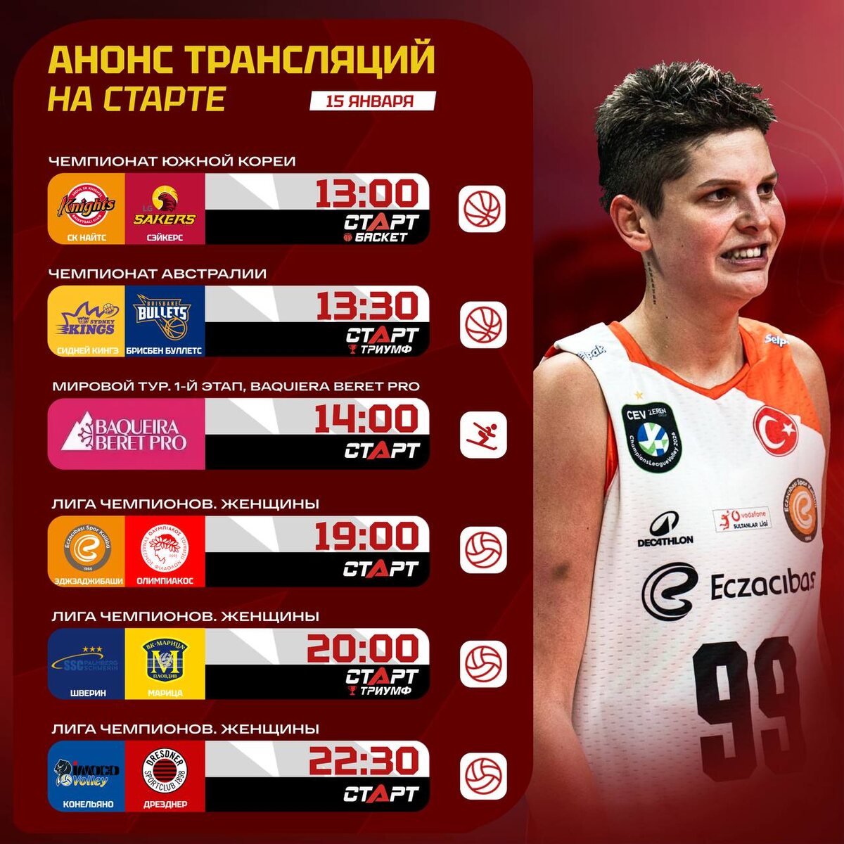 ! Сразу три трансляции данного вида спорта этим вечером — смотрим женскую ЛЧ! Утром разносортный баскетбол, а днём — новинка в фрирайде. Приятного просмотра! 😉 Подписывайся на ТВ СТАРТ в MAX📲