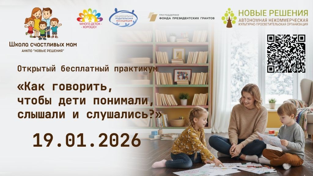 ? ▶️Приглашаем вас в понедельник, 19 января, в 12-00 мск на занятие в бесплатной онлайн «Школе счастливых мам»! ✅На встрече 19 января мы: - создадим правила доверительного общения с ребенком и определим, что стоит каждому усилить в их соблюдении; - проживем практику общения с ребенком из контакта и алгоритм помощи ему в понимании своих чувств; - обсудим виды общения и определим, какого из них больше в нашем взаимодействии с подростком; - будем учиться заменять приказы, использовать Я-сообщения по алгоритму Розенберга, сохранять авторитет, а не контроль, и другие техники. 🎁Участники онлайн - встречи получат в подарок чек-листы "Если ребенок не слышит" и "10 фраз, к которым ребенок прислушивается". Вебинар проведет Наталья Григорьевна Калашникова, доктор пед. наук, профессор, автор и руководитель проекта. ❗Постарайтесь прийти онлайн, по техническим причинам вебинары записываются не всегда! Для того, чтобы присоединиться к занятию, используйте QR-код или эту ссылку: https://pruffme.