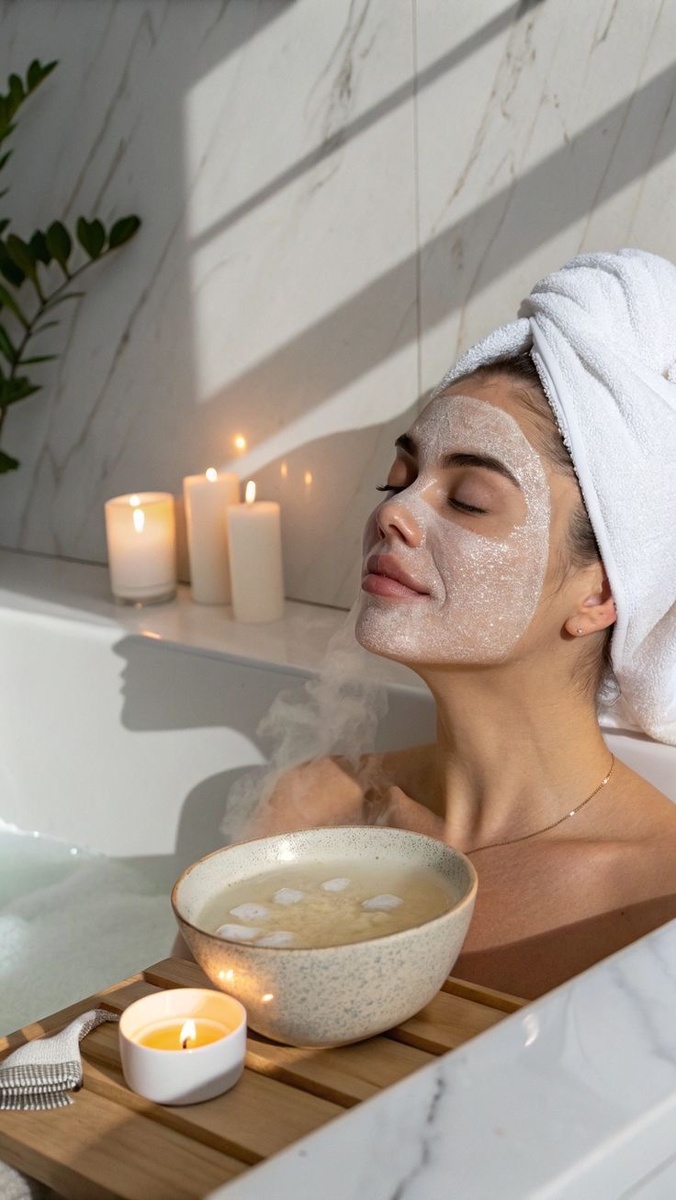 5. Ванна или обертывание (20-40 мин): Погрузитесь в ароматную ванну при температуре не выше 37-38°C с эфирными маслами. Либо нанесите детокс-обертывание и укутайтесь. Закройте глаза и дышите глубоко.