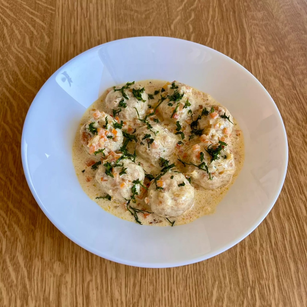 📖 Ингредиенты: * Куриный фарш — 800 г. * Панировочные сухари — 200 г. * Яйцо — 1 шт. * Лук — 1 шт. * Чеснок — 3 зубчика. * Петрушка (небольшой пучок) — по вкусу. * Чёрный молотый перец — ½ ч. л. * Соль — по вкусу. * Молоко — 50 мл. * Мука — 150 г (для обсыпки). * Растительное масло — для обжаривания. * Сливочное масло — 2 ст. л. * Мука — 2 ст. л. (для соуса). * Куриный бульон — 350 мл. * Сметана — 3 ст. л. * Молотый мускатный орех — ¼ ч. л. 🧑🏻🍳 Приготовление: 1. В миске смешайте фарш, измельчённый лук и чеснок, яйцо, перец, петрушку, соль и панировочные сухари. Влейте молоко и ещё раз тщательно перемешайте. 2. Сформируйте шарики диаметром 3–4 см. Обваляйте каждый в муке. 3. В сковороде разогрейте растительное масло и обжарьте фрикадельки с двух сторон до золотистой корочки. Переложите на бумажное полотенце. 4. В той же сковороде растопите сливочное масло, добавьте муку и перемешайте венчиком до золотистого цвета. 5. Постепенно влейте куриный бульон, помешивая, и доведите соус д
