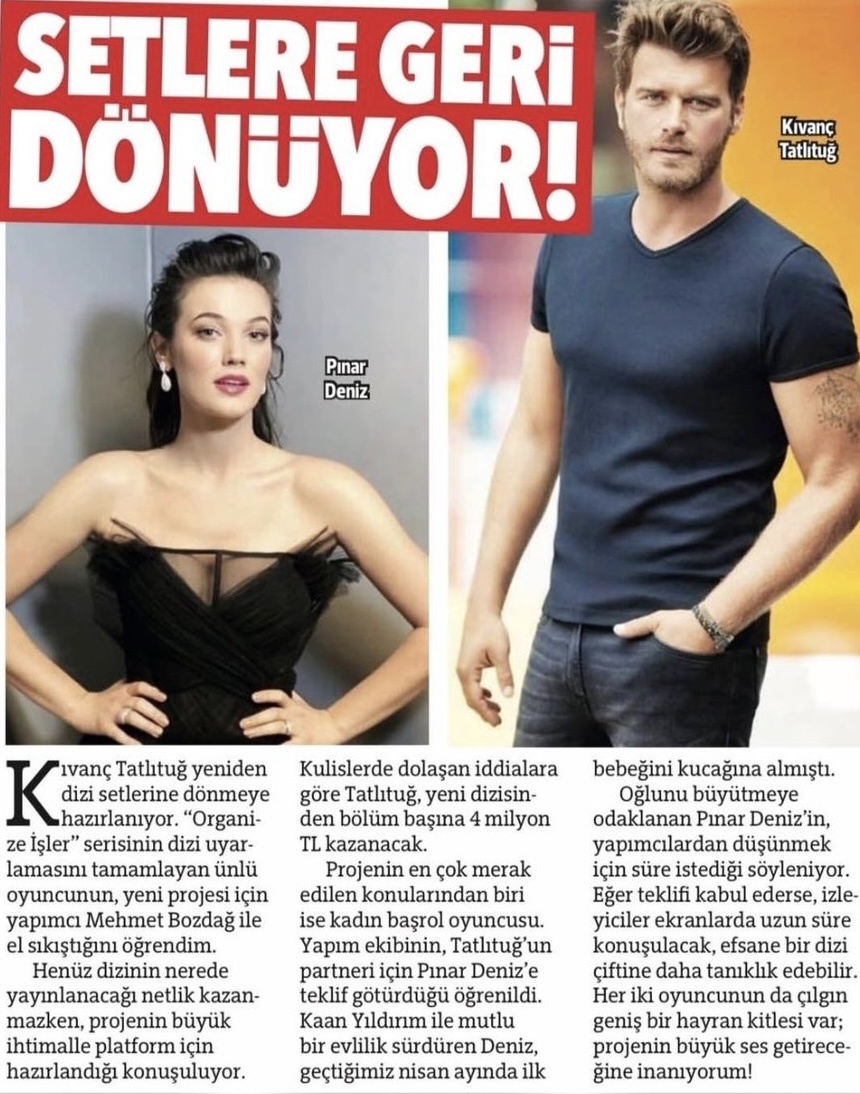 Продюсеры мечтали столкнуть в одном кадре Кыванча и Пынар Дениз, но актриса буквально поставила их перед фактом. После рождения сына в прошлом году её приоритеты изменились. Сейчас в кулуарах только и обсуждают: неужели Пынар откажется от главной роли года ради пеленок? Или же работа с самым красивым актером Турции — это соблазн, перед которым невозможно устоять даже молодой маме?