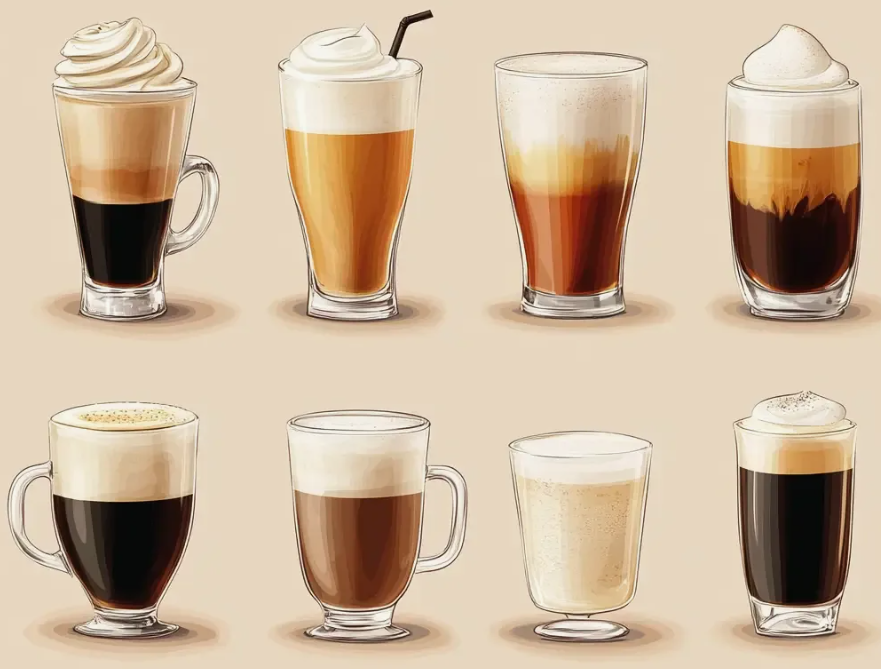 В меню заведений можно встретить разнообразные кофейные напитки, которые отличаются составом, текстурой и вкусовыми характеристиками. Вот 14 популярных вариантов: