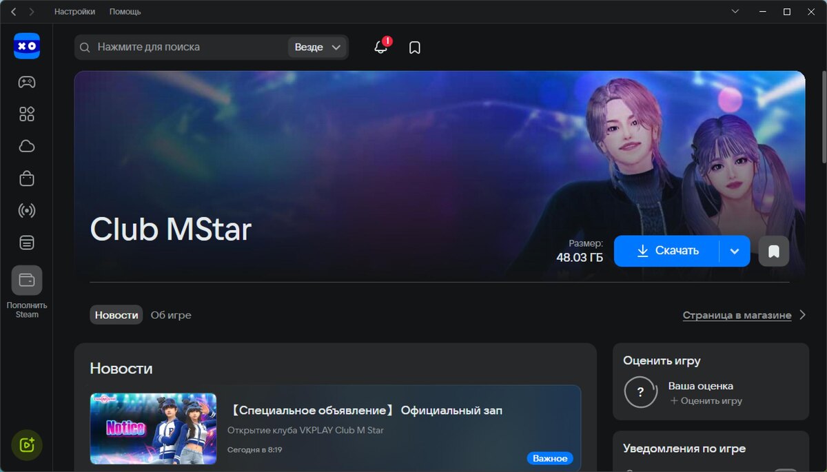 🎮 Club MStar стала доступна для загрузки на платформе «VK Play»!