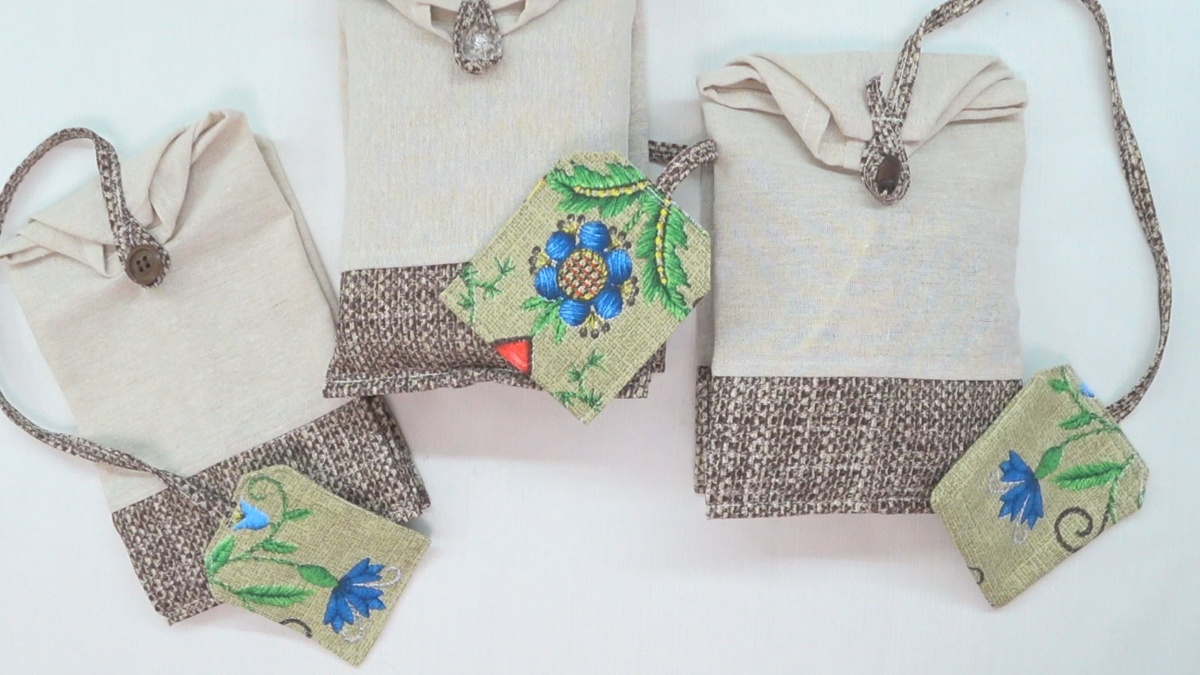 Сшила я эти мешочки из полульна и рогожки. Рогожка как раз тёмного чайного цвета. Ярлычки сделала из яркой ткани, понадобилось её совсем чуть-чуть. Размер можно делать абсолютно любой, а вот форму именно такую как у реальных чайных пакетиков. Если идея понравилась и захотите сшить, то можете это сделать по моему мастер-классу