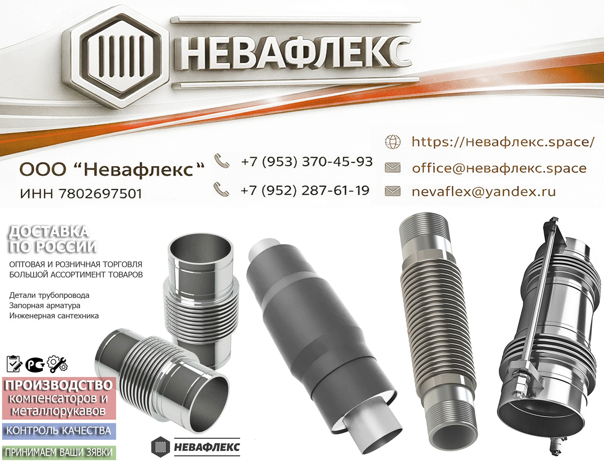 ООО «Невафлекс» — российский производитель и поставщик сильфонных компенсаторов, металлорукавов и сопутствующих изделий. Мы оказываем техническую поддержку и выполняем оперативный расчет проектов.