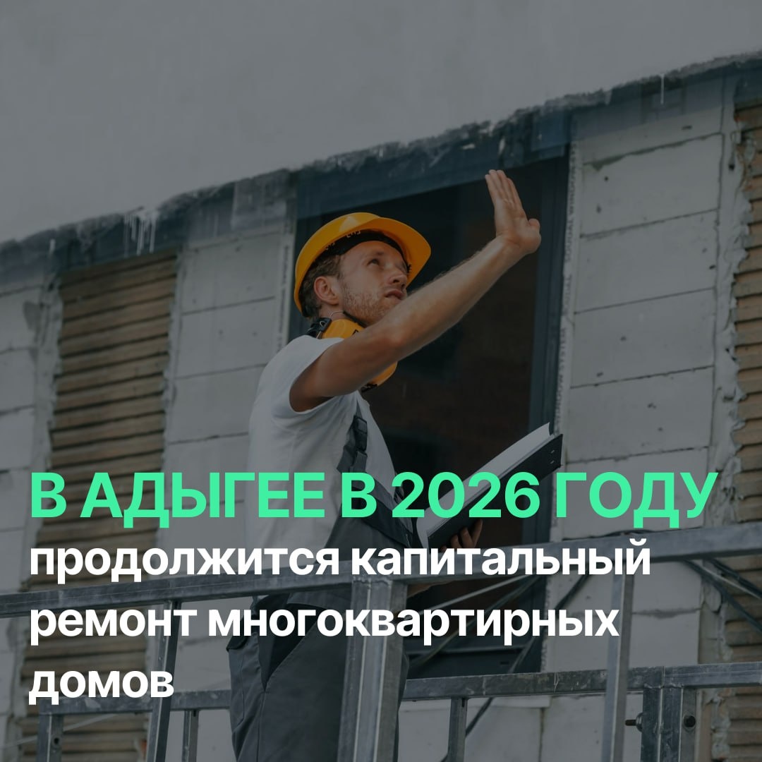 Мероприятия направлены на повышение качества жилищных условий, обеспечение безопасности проживания граждан и продление срока эксплуатации жилого фонда. В текущем году капитальный ремонт будет проведён в 153 многоквартирных домах. Так, капитальный ремонт затронет: 40 многоквартирных домов в городе Майкопе; 9 домов в городе Адыгейске; 4 дома в Гиагинском районе; по 3 многоквартирных дома в Кошехабльском и Красногвардейском районах; 45 домов в Майкопском районе; 47 домов в Тахтамукайском районе; 2 дома в Теучежском районе. На проведение ремонтных работ в 2026 году будет направлено более 329 млн рублей. В ходе работ планируется обновление ключевых конструктивных элементов и инженерных систем многоквартирных домов. В зависимости от технического состояния зданий будут выполнены ремонт кровель, фасадов, фундаментов, внутридомовых инженерных сетей, а также других элементов, от которых напрямую зависят комфорт и безопасность проживания граждан. «Реализация программы капитального ремонта поз