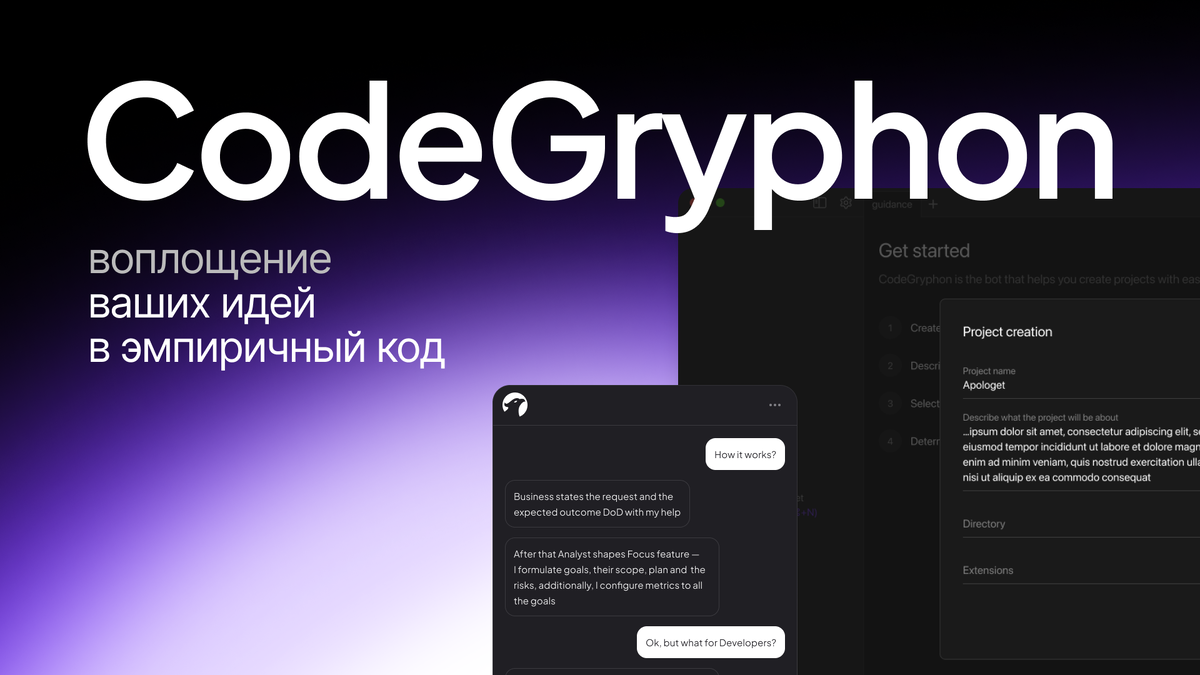 CodeGryphon – правая рука, способная преобразовывать промпт в реальный код и работать с проектом так, как это организовал бы опытный инженер.