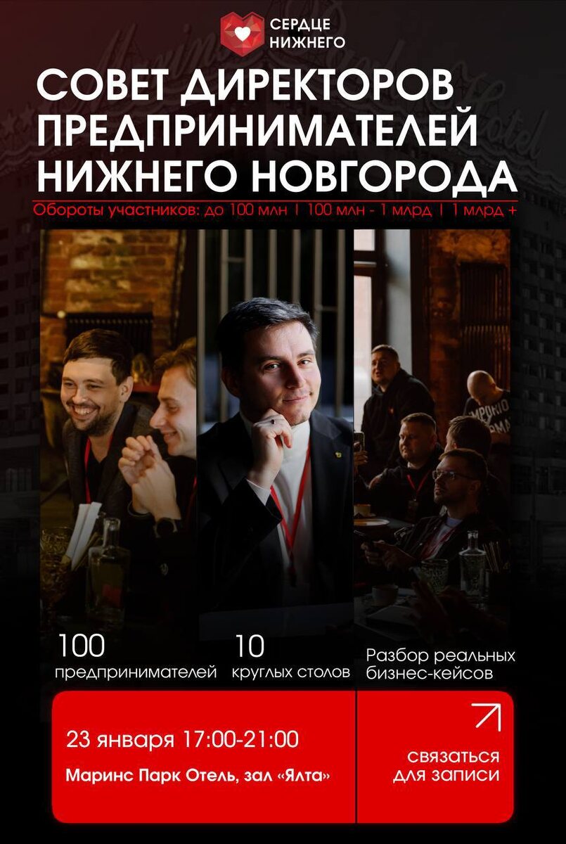 ! 🔖Совет предпринимателей от бизнес - клуба "Сердце Нижнего" 🔹 23 января | 17:00 -21:00 📍Маринс Парк Отель | зал «Ялта» Формат встречи: 💎За каждым столом — модератор; 💎Разбор реальных бизнес-запросов, без теории; 💎Доступ к предпринимателям без "холодного входа"; 💎Новые партнёрства и решениями; 💎Осмысленный старт года с людьми, которые говорят на одном языке. ❗️Знакомства происходят через доверие, рекомендации и совместную работу. Это экономит месяцы переговоров и фильтрации. ✅Подробная информация об участии в данном мероприятии по телефону: 89200274300 Ваш центр «Мой бизнес» ✅ Канал «Мой бизнес» в МAX