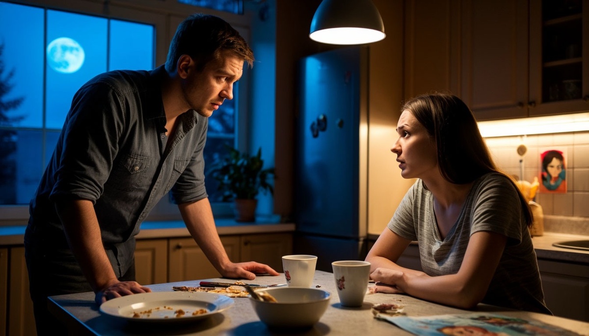 Я вошёл на кухню. Она стояла у раковины, сжимая стакан так, что костяшки пальцев побелели.