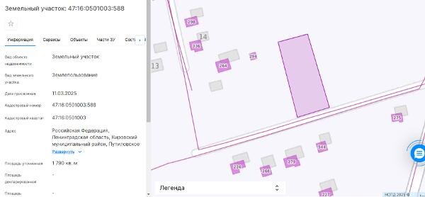 Название: Площадью 1790 кв.м., кадастровый номер 47:16:0501003:588, разрешенное использование: для индивидуального жилищного строительства