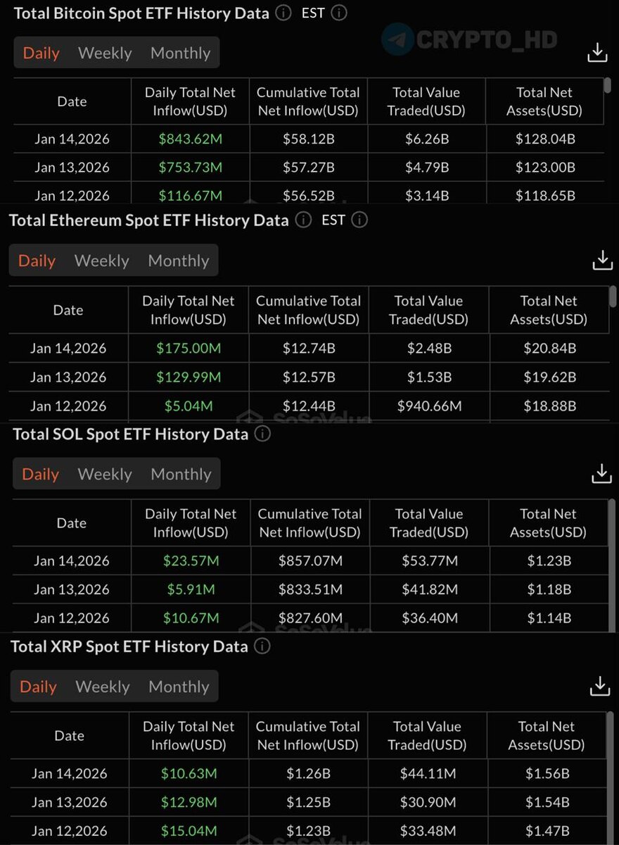 ▫️#BTC = +$843,620,000 (максимум с 7 октября).