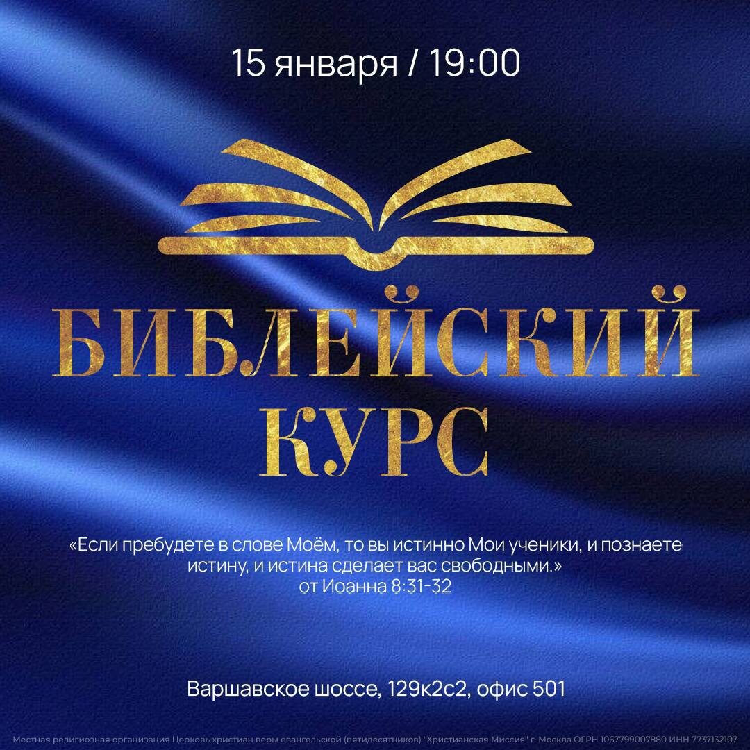 ! «Слово Твоё – светильник ноге моей и свет стезе моей» (Пс. 118:105). 15 января / 19:00 / Варшавское шоссе, 129к2с2, 5 этаж, офис 501 Приглашаем вас сегодня на Библейский курс, чтобы глубже понять Слово Божье, укрепить веру и научиться применять его в жизни! До встречи 🌟