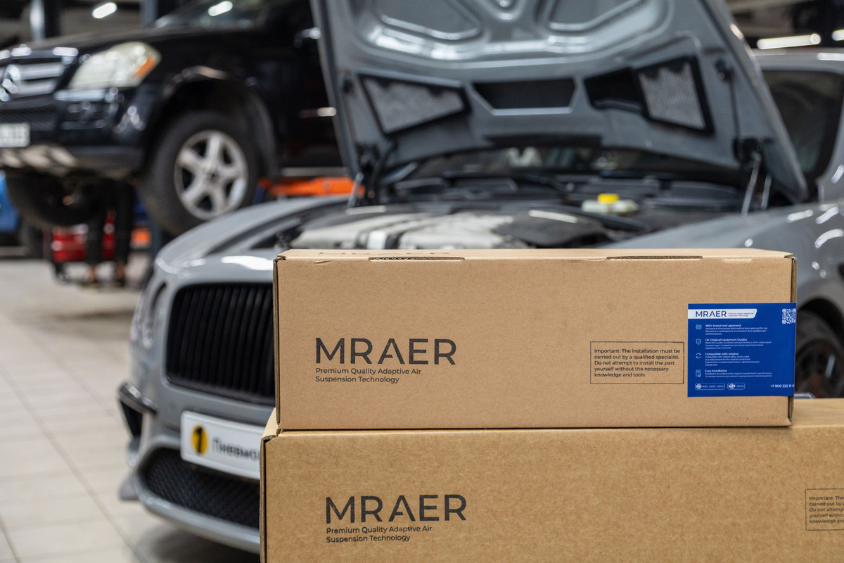 В наш автосервис «Пневмоподвеска №1» на эвакуаторе доставлен Bentley Flying Spur. Причина — лопнувший передний левый пневмобаллон: в результате колесо уперлось в колесную арку, движение стало невозможным. Пробег автомобиля на данный момент составлял 58 809 км. /фото которое нам отправил клиент/ При осмотре было установлено, что на автомобиле установлены оригинальные стойки, за исключением левой передней, которую ранее заменили на альтернативный компонент. Демонтируем передние пневмостойки для дальнейшего разбора и диагностики состояния амортизаторов и пневмобаллонов. В ходе диагностики было выявлено: Правая сторона: Амортизатор находился в хорошем состоянии, к его работе нареканий небыло, однако на пневмобаллоне были признаки естественного старения и усталости пневморукава. Левая сторона: Обнаружены явные признаки течи масла по штоку амортизатора, а также разрушение сайлентблока. По результатам диагностики и согласованию с владельцем автомобиля, было принято решение о замене правого п
