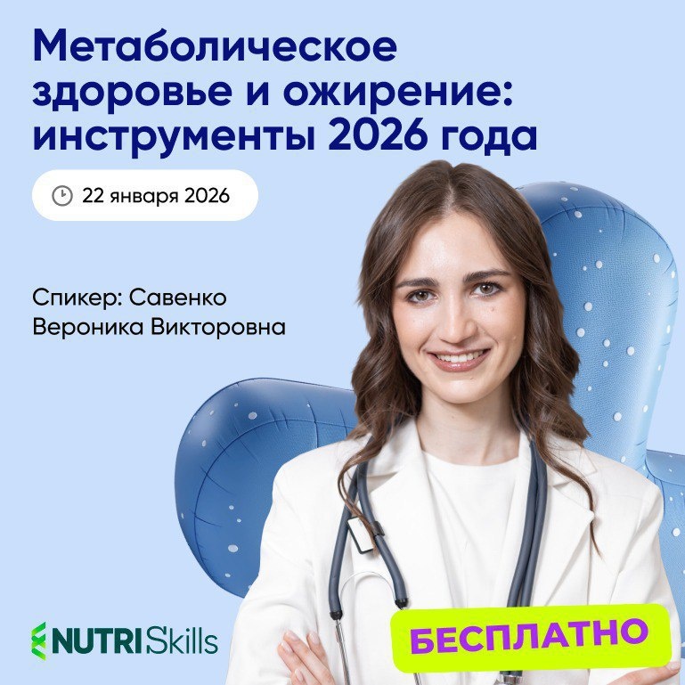 Главная проблема в том, что многие специалисты сосредотачиваются на внешних признаках (вес, форма тела), не понимая, как оценить и улучшить внутренние биохимические процессы. 🔥Приглашаем на БЕСПЛАТНЫЙ вебинар «Метаболическое здоровье и ожирение: инструменты 2026 года». ⏰ 22 января в 18:00 В программе: 🔘Современная концепция ожирения 🔘Почему классические диеты не работают в долгосрочной перспективе? 🔘Корректная диагностика инсулинорезистентности 🔘Когда думать о гормональных причинах ожирения? 🔘Агонисты ГПП-1 / ГПП-1+GIP (Оземпик, Мунджаро): алгоритмы и типичные ошибки. 🔘Оправдана ли терапия тестостероном? Спикер Савенко Вероника Викторовна Врач-эндокринолог, интегративный нутрициолог, автор образовательных программ по нутрициологии и фармакотерапии ожирения. Выбирайте свой тариф участия и не упустите шанс получить: ✔️ Электронный сертификат ✔️ Ссылку на вебинар в записи Ссылка для просмотра придет вам на электронную почту перед началом мероприятия 🔗ПОДРОБНЕЕ