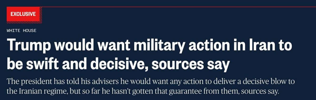Трамп хочет, чтобы любое военное вмешательство США в Иране было быстрым и привело к падению режима