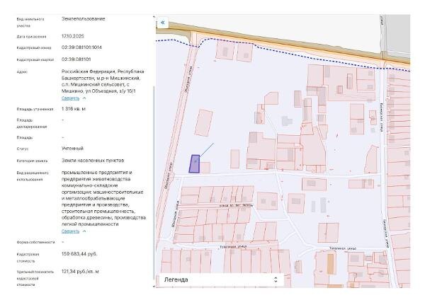 м, расположенного по адресу: РФ, РБ, р-н Мишкинский, Мишкинский с/с, с. Мишкино, ул. Объездная, з/у 1б/1, с видом разрешенного использования: пром. предприятия и предприятия животноводства коммунально-складские организации: машиностроительные и металлообрабатывающие предприятия и производства, строительная промышленность, обработка древесины, производства легкой промышленности. Канал: Госземля Республика Башкортостан Область: - Район: - Населенный пункт: - Локация: Смотреть на карте ВРИ: Иной вид Кадастровый номер: 02:39:081101:1014 Кадастровая стоимость: - Вид сделки: Аренда Площадь: 1316 м² Начальная цена: 2395.00 руб. Дата завершения: 24.01.2026 Подробнее: ГИС ТОРГИ #госземля #земляотгосударства #земля #земельныйучасток #земельныеторги #торги #аукцион #арендаземли #аренда #республикабашкортостан
