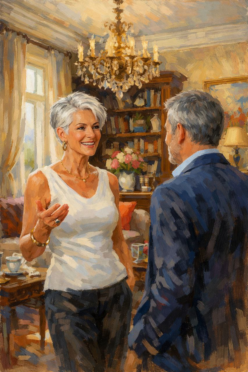В гостиную вошла Елена Михайловна. Лицо её было спокойным, но руки слегка дрожали.