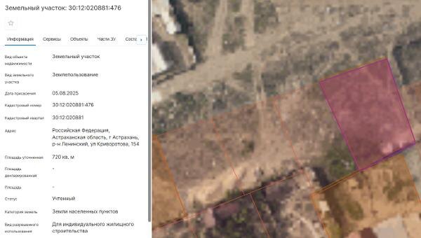 Название: Земельный участок площадью 720 кв.м., расположенный по адресу: Российская Федерация, Астраханская область, г Астрахань, р-н