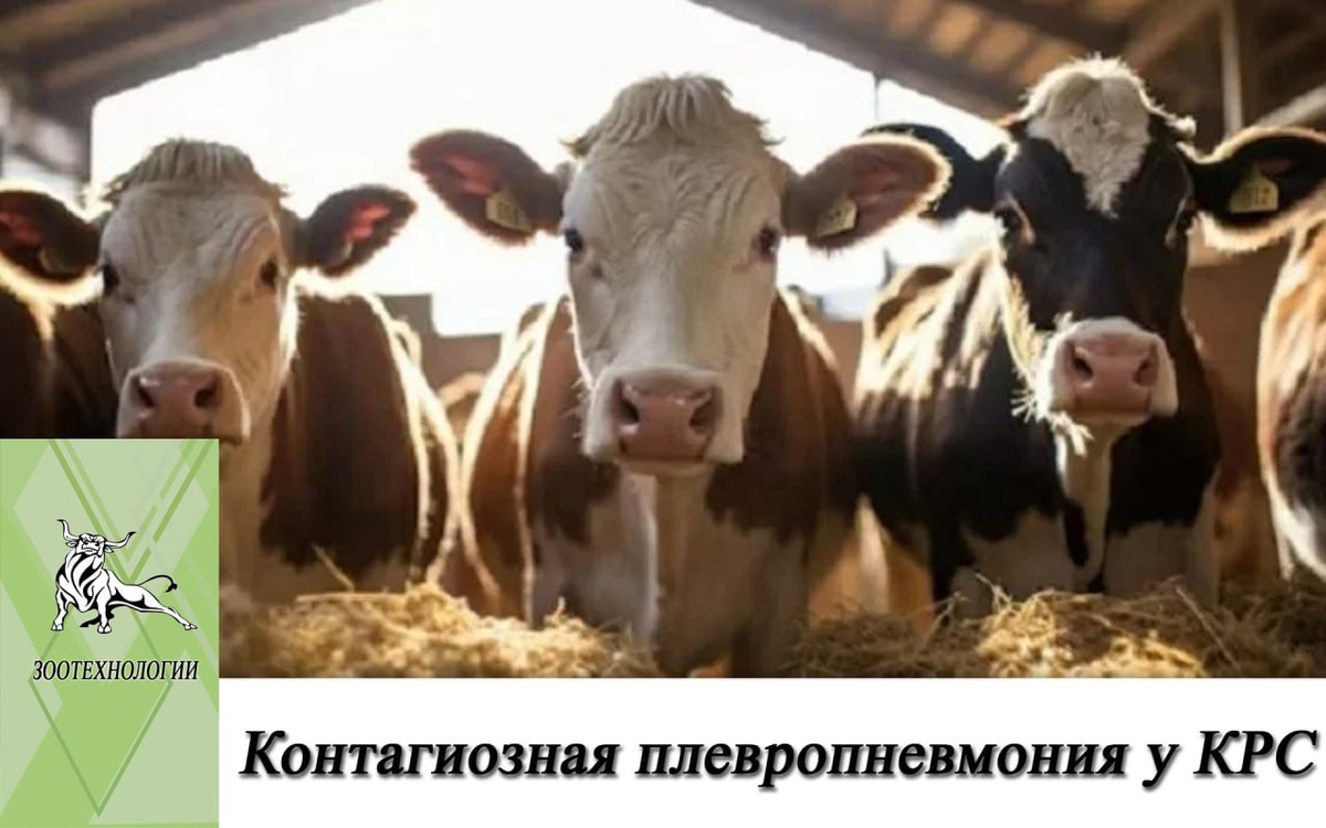 Контагиозная плевропневмония у КРС 🦠 Данное заболевание также известно как повальное воспаление легких. Возбудитель — один из видов микоплазмы (Mycoplasma mycoides subsp. Mycoides). 🐄 Бактерии попадают в хозяйство вместе с зараженными животными, которые не имеют симптомов болезни. По местам содержания возбудитель распространяется с выделениями животных (истечения из носа, слизь при кашле) бронхогенным путем. Наиболее подвержены заражению особи с ослабленным иммунитетом, молодняк, коровы после отела. ❗️ Факторы риска: нарушение гигиены, правил содержания, режима температуры/влажности. ⚠️ Различают 3 основных формы контагиозной плевропневмонии крупного рогатого скота: ➡️ Подострая. Длится несколько недель/месяцев. Животные периодически кашляют, при этом заметны хлопья гноя, что связано с появлением секвестров (некротических участков) в легких. Возможны отеки низа шеи, брюшной стенки. Особи постепенно худеют, иногда проявляется лихорадка, диарея и другие расстройства ЖКТ. ➡️ Остра