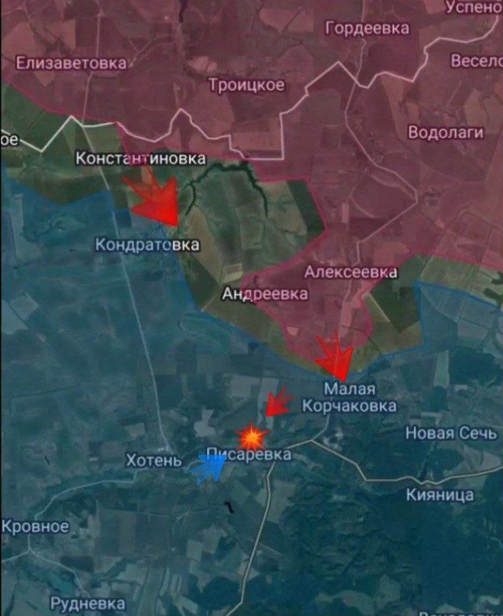 Бойцы ВС РФ продолжают зачищать территории в Сумской и Харьковской области, продвинувшись на 700 метров в Краснопольском и Глуховском участках. Российские военные взяли под свой контроль село Комаровка. В районе Алексеевки наши бойцы огневым воздействием ликвидировали штурмовую группу противника, в районе Андреевки и Юнаковки продолжаются встречные бои. В Писаревском районе ежедневно идут ожесточённые бои. От Константиновки до балки Дибровка расширяется освобожденная территория. В районе Варачино нашими силами предотвращена попытка атаки штурмовой группой врага. На данном направлении наша артиллерия и авиация активно обрабатывает места скопления и базы ВСУ. Потери противника за сутки: 💥 более 90 человек личного состава; 💥 2 ББМ; 💥 2 миномета; 💥 7 внедорожников, грузовик и багги; 💥 9 ПУ БпЛА; 💥 2 станции спутниковой связи "Старлинк" и 4 антенны связи; 💥 25 БПЛА самолетного типа и 3 БПЛА типа "Баба Яга"; 💥 2 склада матсредств. ▫️ Дневник Десантника 📲 Дневник Десантника
