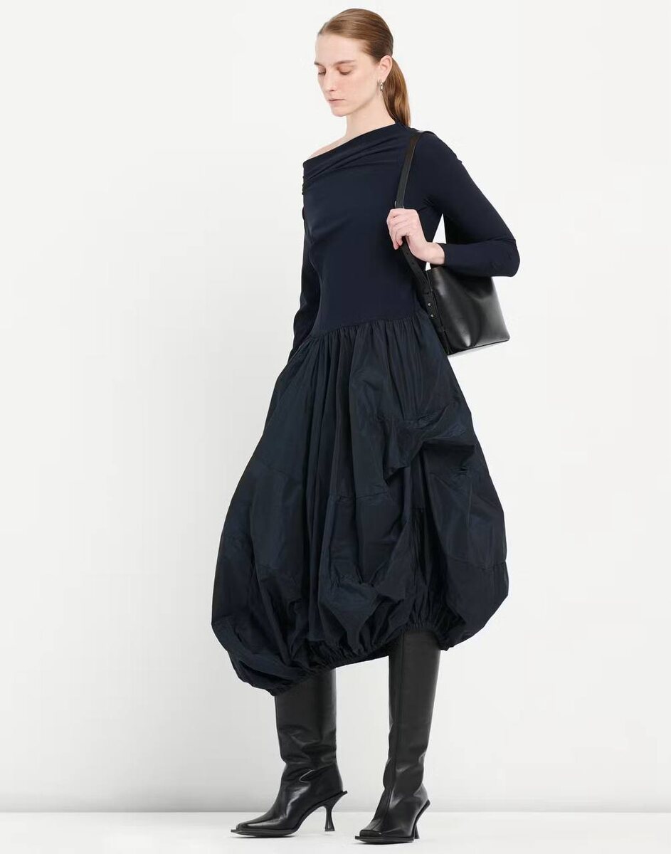 Платье построено на игре контрастов. Верх, созданный из матовой ткани Sensitive, лаконичен и собран. Нижняя часть обретает объем в мягком воздушном силуэте, переливаясь лёгкими складками блестящей тафты. Асимметричная линия горловины, длинные рукава и боковые карманы подчёркивают продуманность дизайна. 📍Ждём вас в ТРЦ Европейский, 2 этаж.