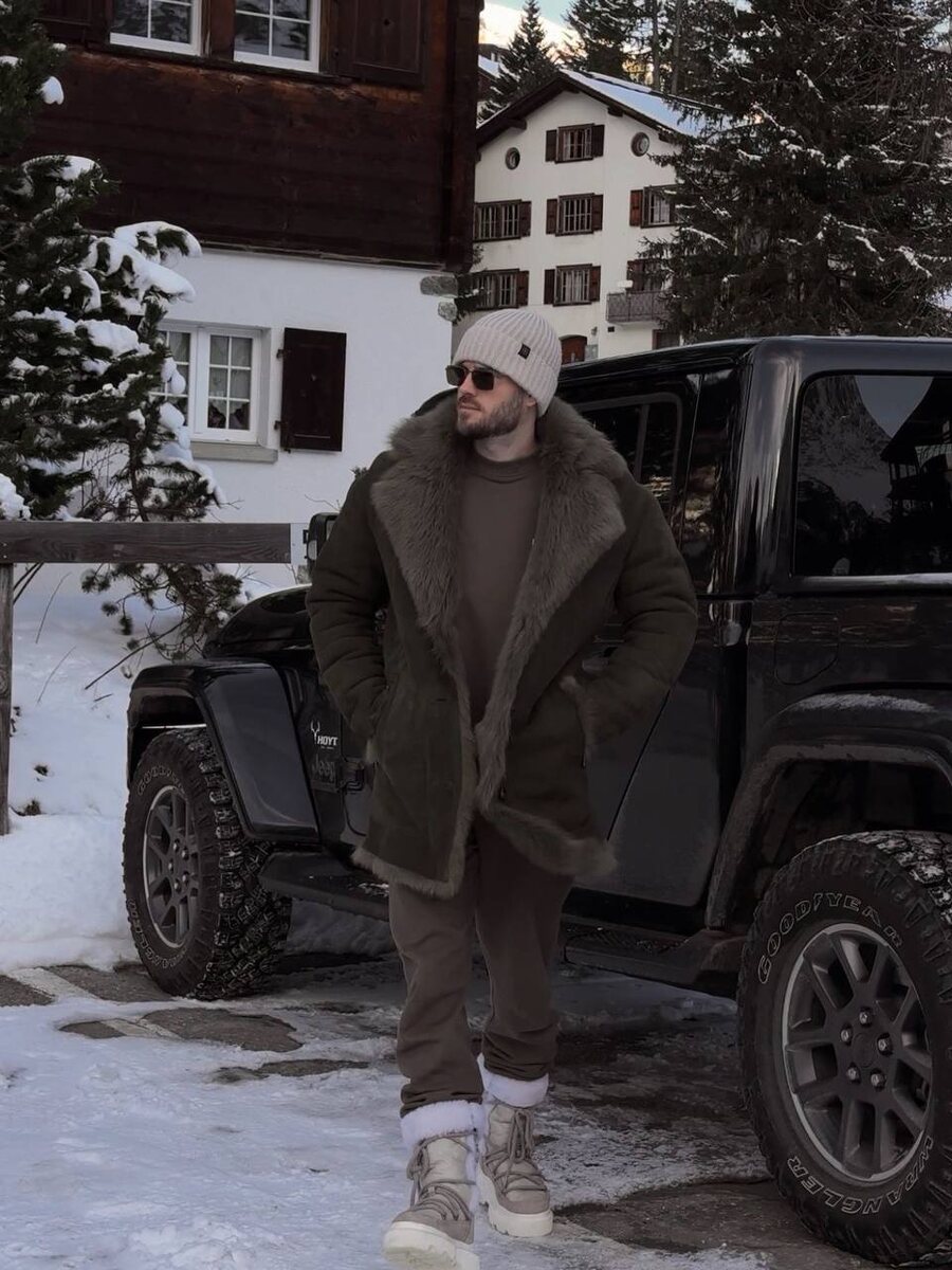 Этот образ — про спокойную мужскую уверенность и продуманный комфорт. 🤍Парка с меховой отделкой выглядит массивно, но за счёт мягкой формы и правильной длины не утяжеляет силуэт. 🤍Под паркой — монохром в тёплых оттенках: свитер и брюки создают цельный силуэт и ощущение собранности. Ничего лишнего, всё про удобство и стиль одновременно. 🤍Шапка и солнцезащитные очки добавляют расслабленности, а массивные зимние ботинки «заземляют» образ и делают его практичным, а не декоративным. Это отличный пример современного casual для зимы: когда мужчина выглядит стильно потому что понимает, что ему идёт. Ссылки на альтернативный образ тут 👇 Дубленка Свитер Брюки Обувь Шапка Очки
