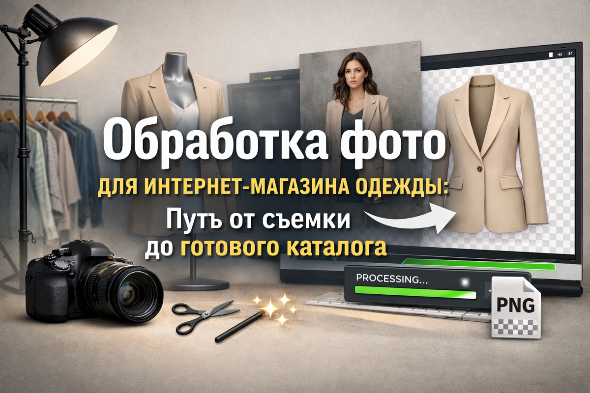 Как выстроить обработку фото одежды: съемка → обтравка → PNG → каталог. Чек-листы и советы. Попробуйте Obtravka AI для удаления фона.