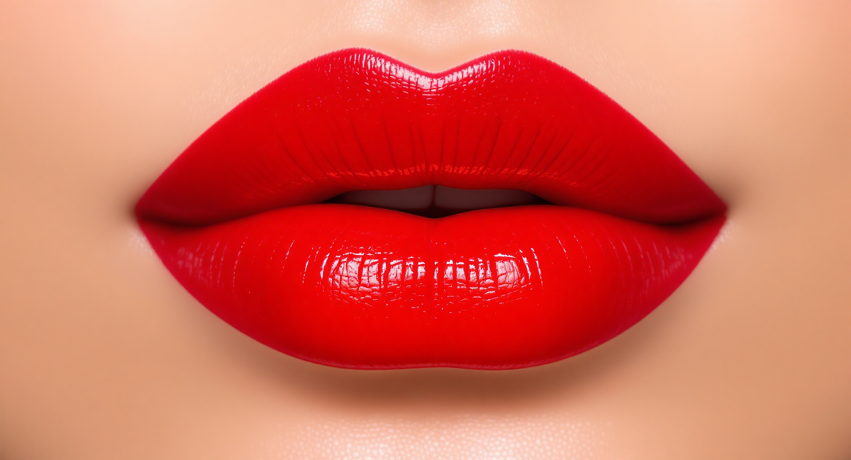 Красный блеск поверх гигиенической помады или поверх тонкого слоя тона. Матовый омбре