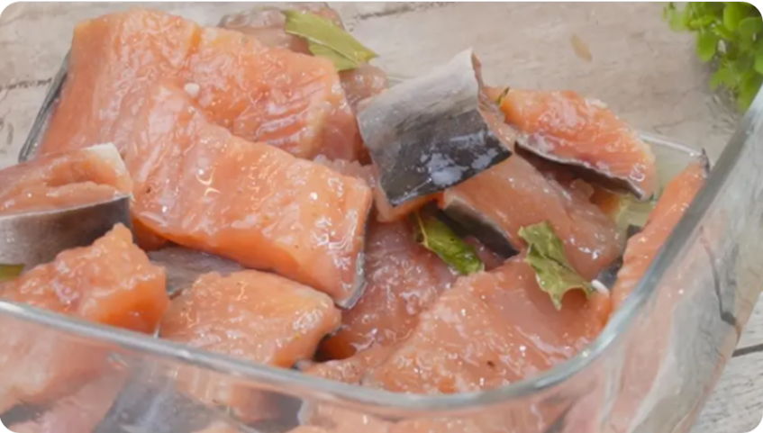 Иногда хочется вкусной соленой рыбки к ужину, но нет времени ждать несколько дней. Именно поэтому я сегодня солила горбушу по быстрому методу — в масле. Результат порадовал: рыба получается плотной, не размокает, прекрасно держит форму и отлично подходит к гарниру. Способ проще, чем засолка в рассоле, на мой взгляд. Хочу поделиться этим вариантом. Может, и вам пригодится. Горбушу размораживаем но не до конца, чтобы легче было разделывать на филе. Помните, что безопасность превыше всего! Используйте только свежие продукты и следуйте проверенным рецептам. Из головы и обрезков варю рыбный суп, всё идет в дело, ничего не пропадает. А куда Вы деваете головы? У каждой хозяйки найдутся свои секреты, не правда ли... Делитесь в комментариях Подготовленное филе порежем на порционные кусочки, у меня филе получилось 700 г. В миску кладем соль 1,5ст.л. и 1ч.л. сахара, все перемешиваем, сахар нужен чтобы придать рыбе более мягкий вкус. В контейнер кладем рыбу, солим, перчим, добавляем лавровый лист