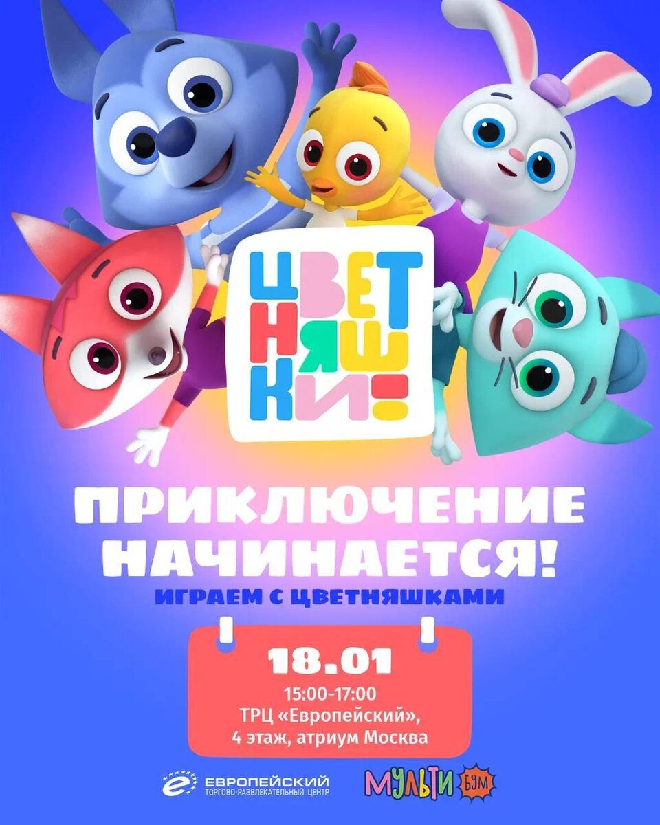 »! Цветняшки и Крут зовут играть в хоккей! 🏒 🗓️18 января с 15:00 до 17:00 (воскресенье) 📍ТРЦ «Европейский», 4 этаж, Атриум: Москва Вместе мы станем частью команды «Ледяное сердце» и поможем героям обрести суперспособности. Крутая игровая программа для супергероев: • Игра «Скорость мысли» • Игра «Сила броска» • Игра «Вера в себя» • Игра «Решительность» • Игра «Храбрость духа» • И настоящее ледяное шоу! Каждый участник получит приз, а в мастерской Зайчонка Скока мы вместе создадим маски героев мультфильма из цветной бумаги! 🆓 Бесплатно Подробнее ЗДЕСЬ @Together_with_kids Пост носит информационный характер Поддержать канал голосом ЗДЕСЬ 📲 Подписаться в МАХ