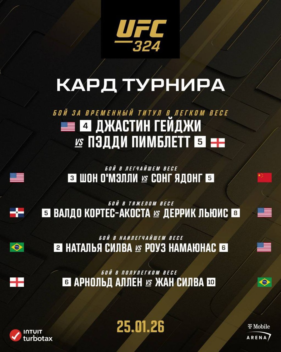 ⚡️ А вот и изменения в мейн-карде турнира #UFC324