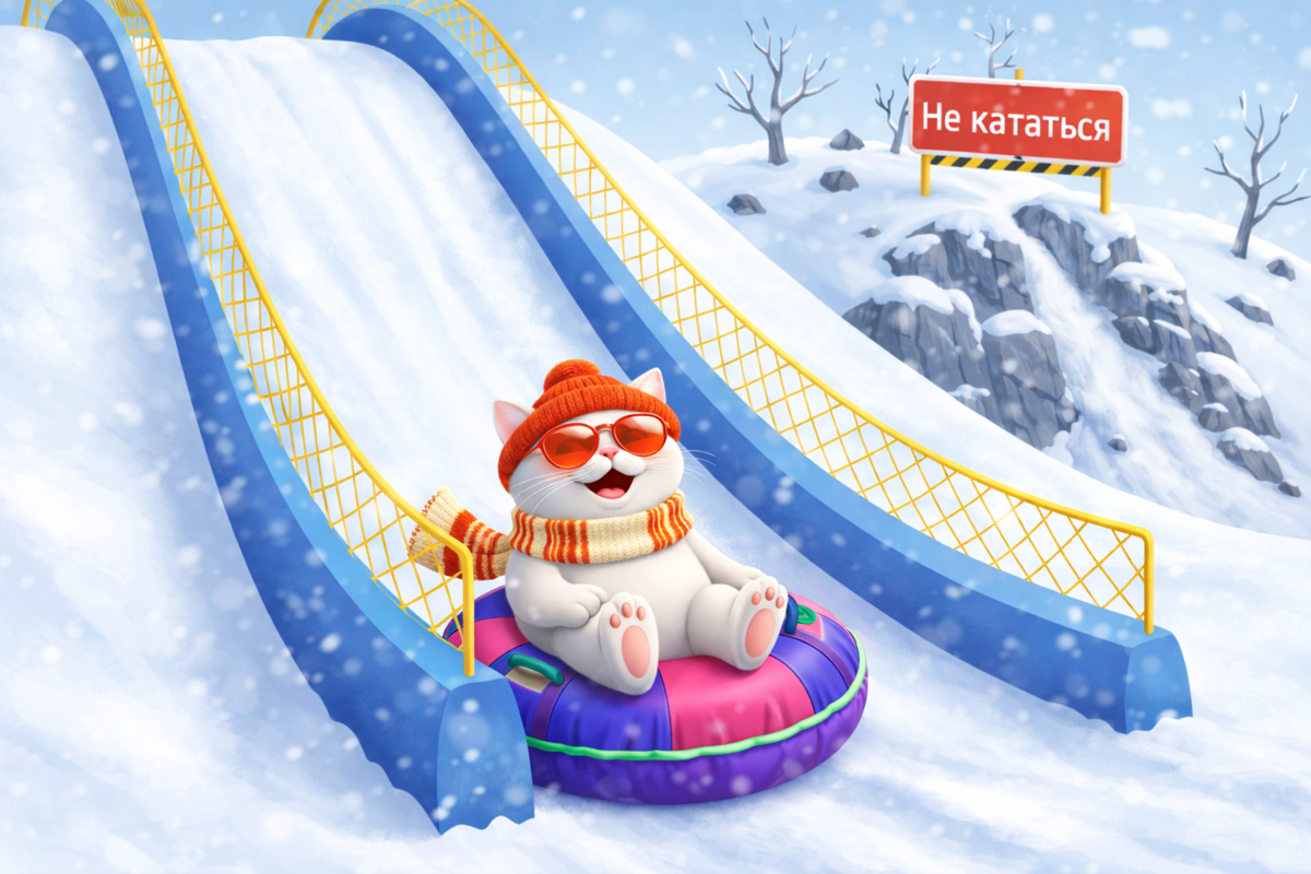 Ватрушка — коварная штука: руля нет, тормоза не предусмотрены, а жажда приключений зашкаливает. Тюбинг кажется безобидным, пока ты не решишь привязать его к бамперу автомобиля или сесть вдвоем. Эта статья — краткий курс для тех, кто планирует весело покорять склоны и выжимать максимум из любимой зимней забавы без вреда для здоровья. Правило №1: катайся только на специально оборудованных спусках Катание со случайной и неоснащенной горки чревато серьезными последствиями. Стихийная горка — это лотерея, где главный приз — гипс. На высокой скорости любой тюбинг становится неуправляемым: тормозов на нем нет, а изменить направление движения крайне сложно Правило №2: машина и ватрушка — не пара Ты не каскадер, а твой друг на машине — не Доминик Торетто. Нельзя цеплять ватрушку к машине: любой маневр даже на низкой скорости может обернуться трагедией. Запоминаем: машине — бензин, ватрушке — снег! Правило №3: катаемся по одному Хочешь сделать из ватрушек змейку? Исключено. Они не предназначены д