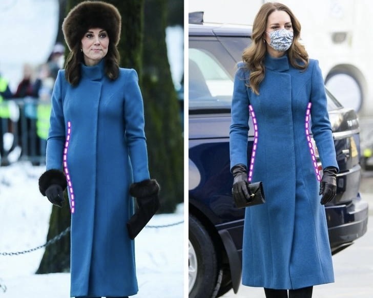 Главный секрет герцогини — одежда по фигуре. Почти все её наряды шьются или подгоняются специально под неё. Даже старые вещи Кейт умело обновляет и носит повторно. Так, её синий пальто, которое она носила во время беременности в 2018 году, спустя пару лет было изменено и снова появилось на публике, выглядело как совершенно новое.